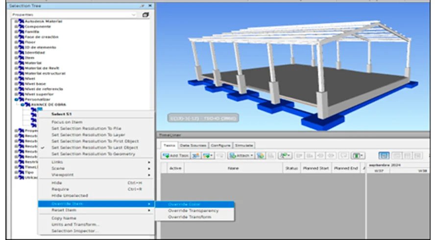 Luego, en la herramienta Timeliner, relaciona los elementos con la planificación de obra para generar una simulación del proceso constructivo y validar la secuencia de ejecución.