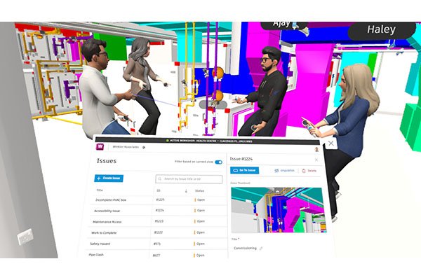 Facilita la visualización de proyectos a escala real, permitiendo recorrer modelos, detectar interferencias, evaluar diseños y tomar decisiones de manera más clara antes de la construcción. Los usuarios pueden colaborar en tiempo real, revisar detalles del proyecto y comunicarse dentro del entorno virtual, mejorando la comprensión y coordinación entre equipos.