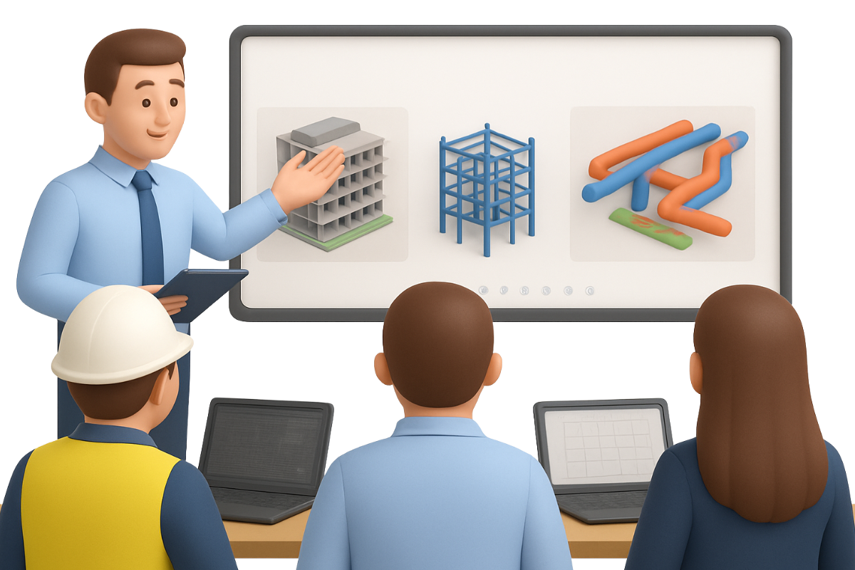 Nuestras capacitaciones abarcan software para diseño, modelado, coordinación, análisis y gestión de proyectos, adaptándose al nivel de experiencia y objetivos de cada organización.